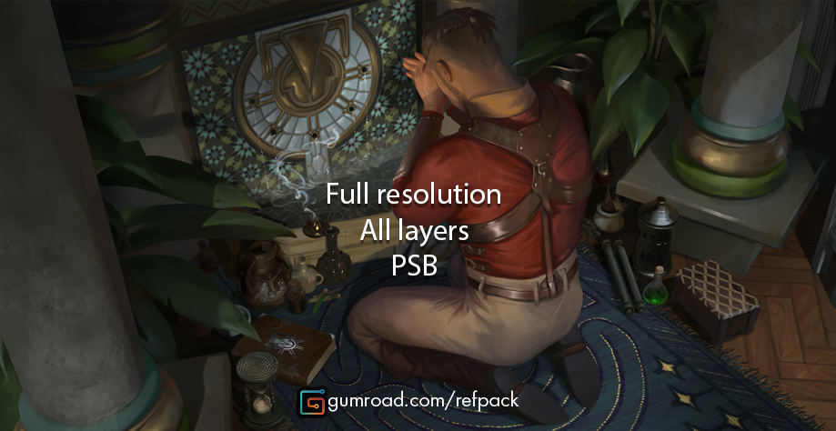I've put one of my most detailed artworks available as full working resolution PSB (8800px by 3865px). The download also included jpegs of the step by step work progress.